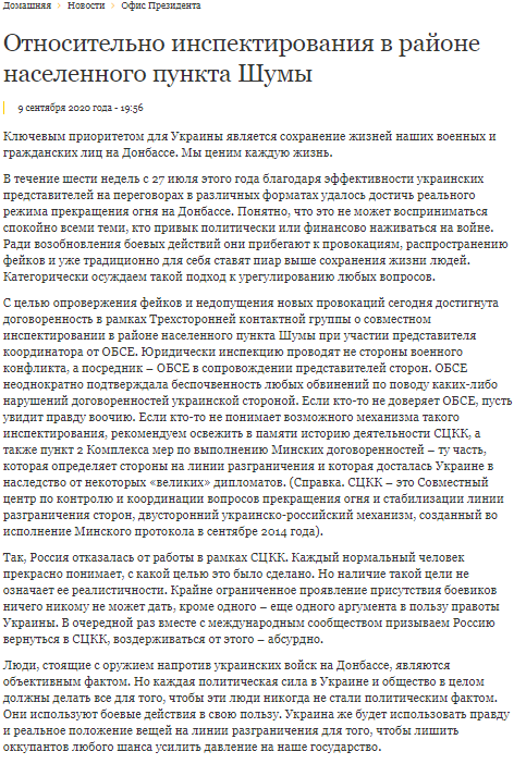 О том, что сепаратисты будут допущены к инспекции в Шумах, Офис президента официально подтвердил вчера.