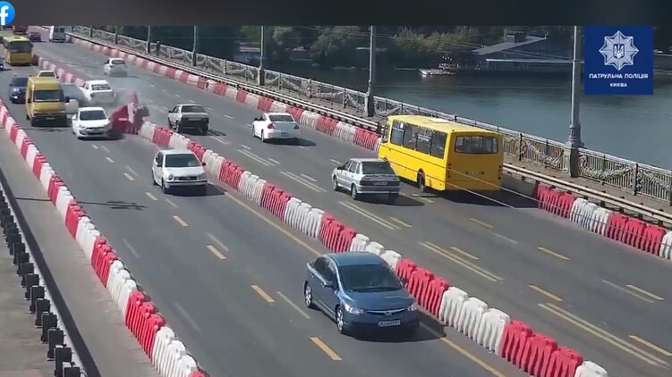 В Киеве на мосту Патона водитель одного из автомобилей зацепил разделительное заграждение и спровоцировал масштабное ДТП. Инцидент попал на видео.