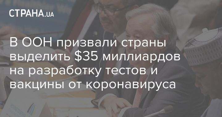 В ООН призвали страны выделить $35 миллиардов на разработку тестов и вакцины от коронавируса