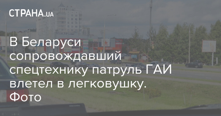 Автомобиль ГАИ попал в аврию, сопровождая спецтехнику в Беларуси. Фото: tut.by