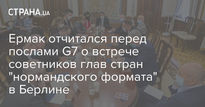 Руководитель Офиса президента Украины Андрей Ермак встретился с послами стран Большой семерки. Он доложил им о результатах переговоров советников лидеров стран - участниц "нормандского формата", которая прошла в Берлине 11 сентября.