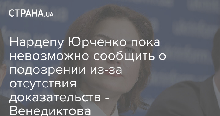 Генеральный прокурор Украины Ирина Венедиктова не располагает доказательствами получения взятки народным депутатом Александром Юрченко, поэтому сообщить о подозрении ему пока невозможно.