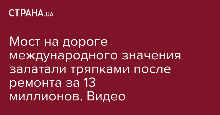 На важной трассе международного значения в Ровенской области недавно отремонтированный мост приходится латать тряпками из-за широкого стыка с торчащей арматурой.