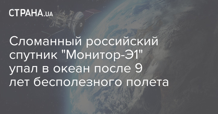 Российский спутник "Монитор-Э1", который был выведен из эксплуатации еще в 2011 году, сошел с орбиты и сгорел в атмосфере во вторник, 22 сентября.