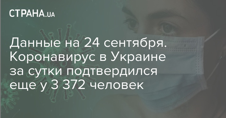 Данные на 24 сентября. Коронавирус в Украине за сутки подтвердился еще у 3 372 человек