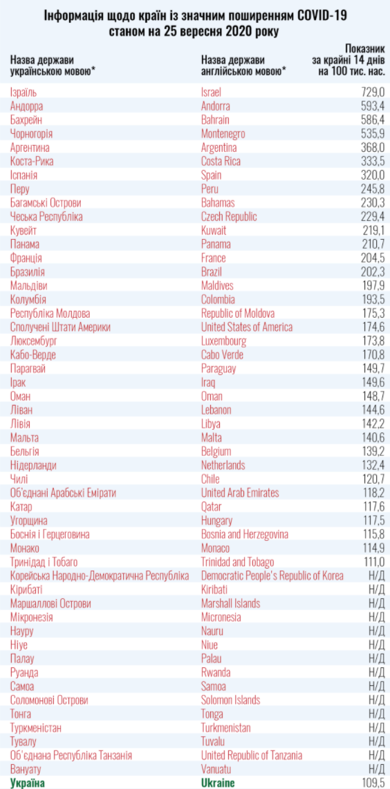 По состоянию на пятницу, 25 сентября, все страны-соседки Украины, кроме Венгрии и Молдовы, определены Минздравом в "зеленую" зону по распространению коронавирусной болезни.
