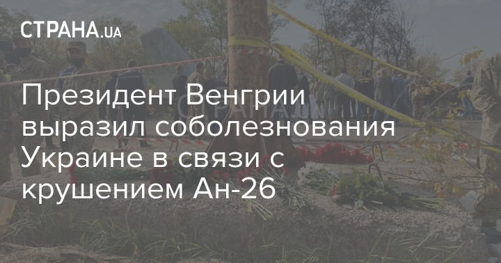"Президент Венгрии Янош Адер направил президенту Украины Владимиру Зеленскому соболезнования от имени Венгрии в связи с катастрофой в аэропорту города Чугуева самолета Ан-26 Воздушных сил Вооруженных сил Украины вечером 25 сентября", - написала дипломат в Facebook.