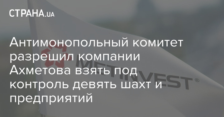 Антимонопольный комитет Украины (АМКУ), который летом возглавила бывшая работница компании Рината Ахметова, завершил рассмотрение четырех дел о приобретении холдинга олигарха Metinvest B.V. контроля над девятью субъектами хозяйствования. Последние ведут деятельность в сфере добычи и продажи коксующегося угля. В соответствии с решением АМКУ Metinvest B.V. получил контроль над этими субъектами.