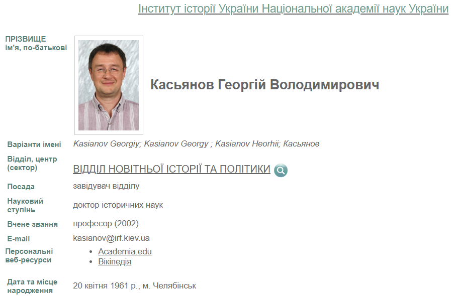 Этот историк в Украине достаточно известен. Он является заведующим отделом новейшей истории Украины профильного института НАНУ. Доктор наук.