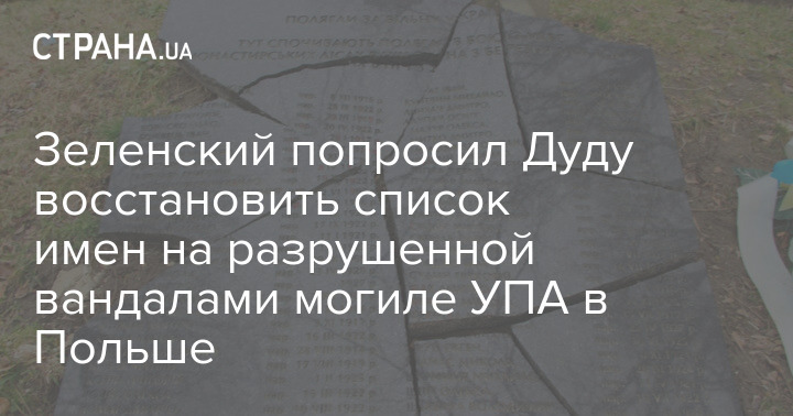 Как сообщалось, в сентября Владимир Зеленский попросил Дуду восстановить могилу УПА в Польше.