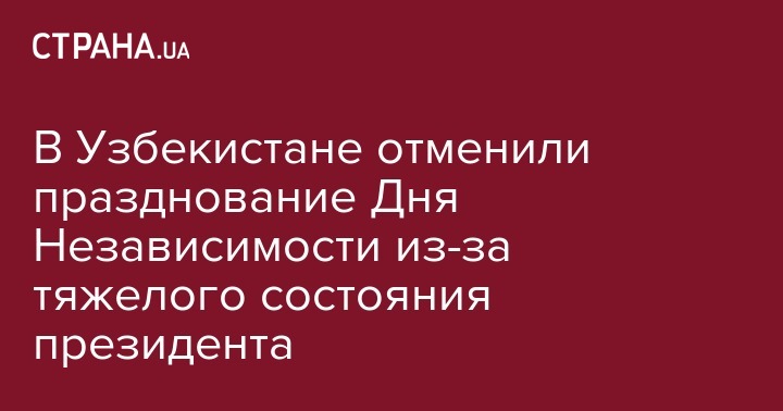 В Узбекистане отменили празднование Дня Независимости из-за тяжелого состояния президента