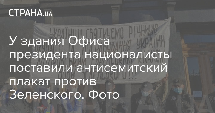У здания Офиса президента националисты поставили антисемитский плакат против Зеленского. Фото
