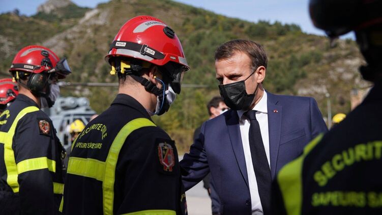 Макрон (без каски) введет комендантский час. Фото: Facebook/ EmmanuelMacron