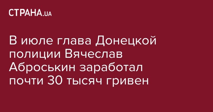 В июле глава Донецкой полиции Вячеслав Аброськин заработал почти 30 тысяч гривен