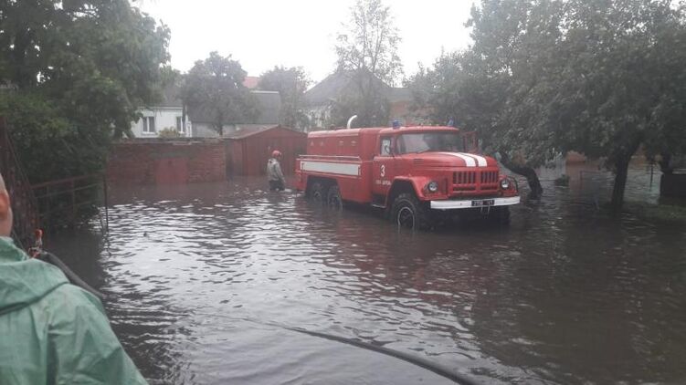 В Белой Церкви из-за сильного ливня подтопило несколько домов. Ликвидацией подтоплений занимаются местные пожарные.