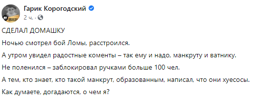 Как думаете, догадаются, о чем я?", - пишет бизнесмен Гарик Корогодский.
