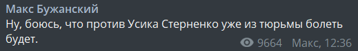 "Боюсь, что против Усика Стерненко уже из тюрьмы болеть будет", - написал нардеп Макс Бужанский, говоря о том, что праворадикала сейчас судят за умышленное убийство человека.