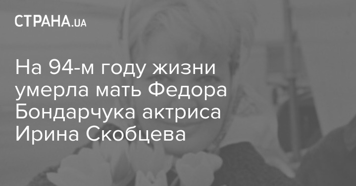 Во вторник, 20 октября, на 94-м году ушла из жизни народная артистка РСФСР Ирина Скобцева - мать российского режиссера и актера Федора Бондарчука.