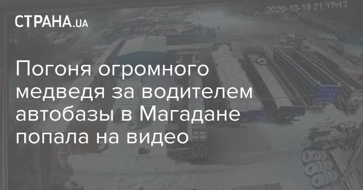 В России по одному из районов Магадана бродит крупный медведь. Один из таких визитов попал на видео. Камера запечатлела, как косолапый бодро пробегает по территории автобазы.
