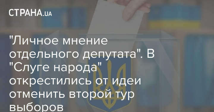 Идея отменить второй тур на местных выборах из-за распространения коронавируса, которую в проекте постановления Рады описали "слуги народа", не является официальной позицией президентской партии, это личное мнение отдельного депутата.