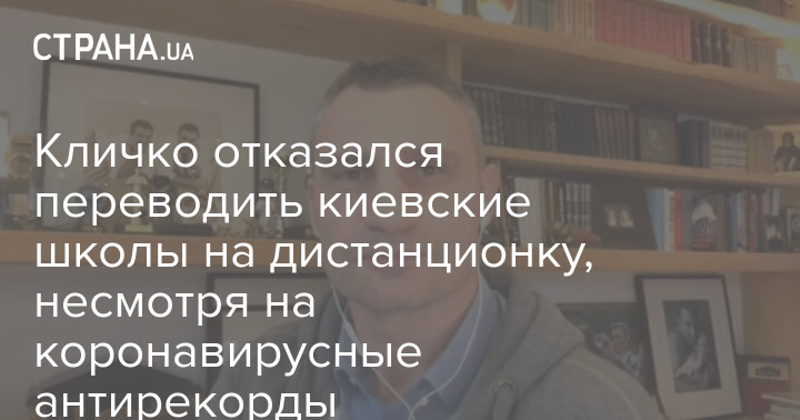 Власти Киева, где сегодня установлен новый антирекорд по суточному приросту больных коронавирусом, не будут переводить все школы на дистанционное обучение. Об этом мэр столицы Виталий Кличко заявил во время онлайн-брифинга в прямом включении из дома, где градоначальник самоизолирован из-за заболевания коронавирусом.