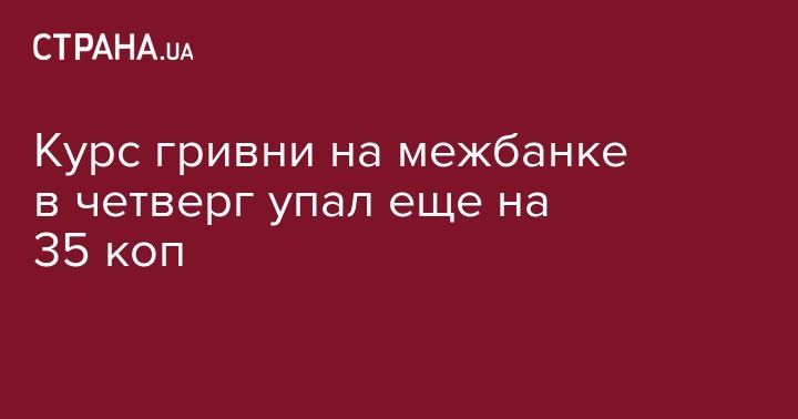 Курс гривни на межбанке в четверг упал еще на 35 коп
