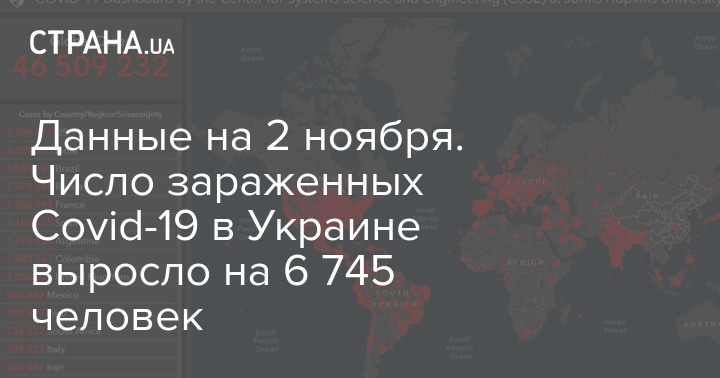 Данные на 2 ноября. Число зараженных Covid-19 в Украине выросло на 6 745 человек