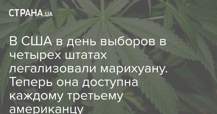 В США увеличилось число штатов, которые легализовали использование марихуаны в рекреационных целях для людей старше 21 года. Так, жители Монтаны и Южной Дакоты проголосовали в ходе выборов за такое решение так же, как американцы из Аризоны и Нью-Джерси