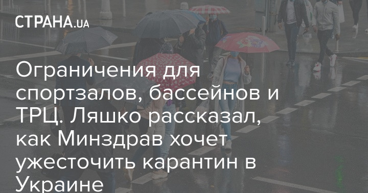 Министерство здравоохранения Украины предложит правительству ужесточить в стране карантин. В частности, речь идет о новых ограничениях для ТРЦ, спортзалов и бассейнов, а также о запрете на проведение массовых мероприятий.