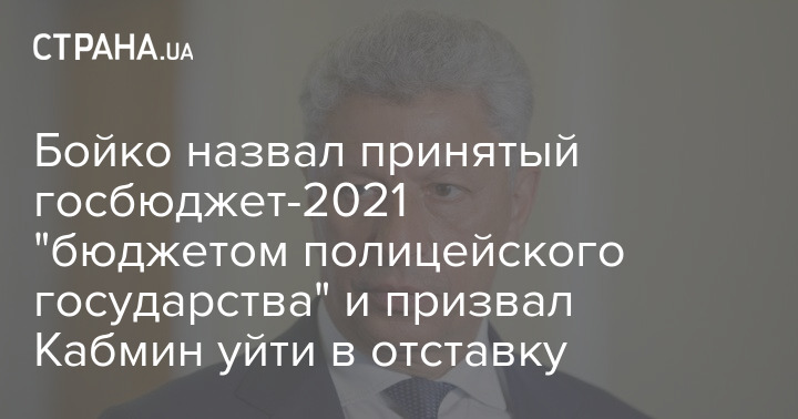 Бойко назвал принятый госбюджет-2021 "бюджетом полицейского государства" и призвал Кабмин уйти в отставку