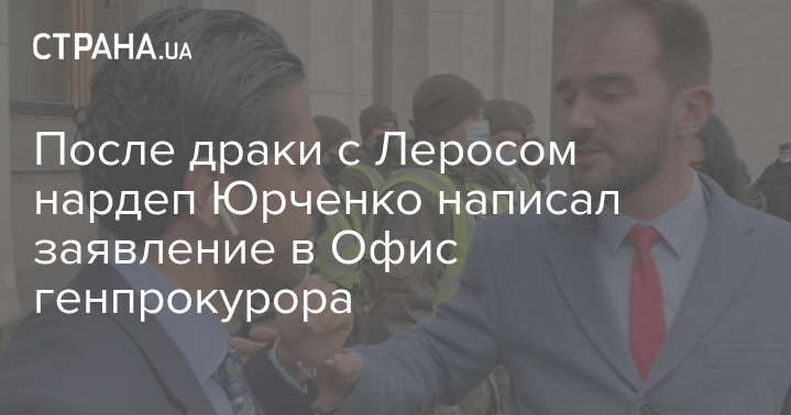 После вчерашней драки с нардепом Гео Леросом в кулуарах Верховной Рады его коллега Александр Юрченко обратился с заявлением в Офис генпрокурора. Об этом он написал на своей странице в соцсети.