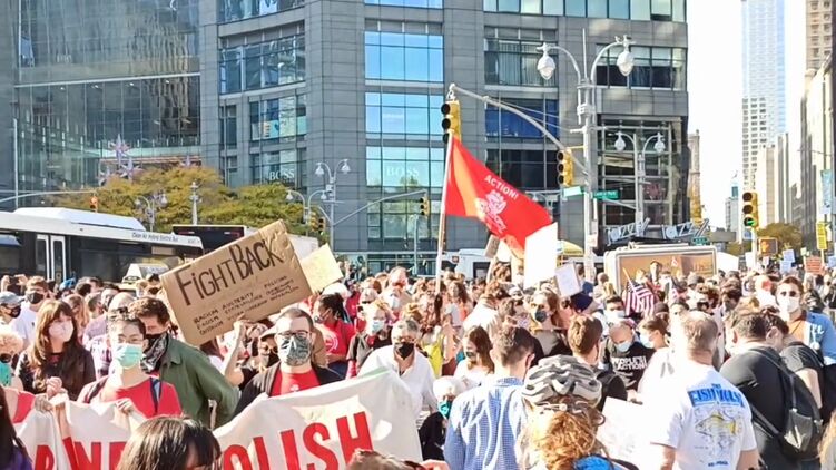По его словам большое количество американцев собралось, в частности, у Центрального парка и Таймс-сквер. Некоторые из них пришли с транспарантами, плакатами и флагами Соединенных Штатов.