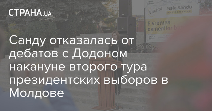 Прозападный кандидат в президенты Молдовы от партии "Действие и солидарность" Майя Санду накануне второго тура выборов отказалась от дебатов со своим соперником, действующим главой государства Игорем Додоном.