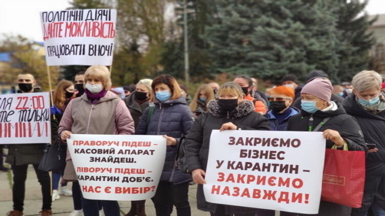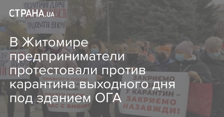 В понедельник, 9 ноября, в Житомире под зданием ОГА предприниматели протестовали против карантина выходного дня. Они считают, что новое ограничение ударит по малому бизнесу, передает Укринформ.