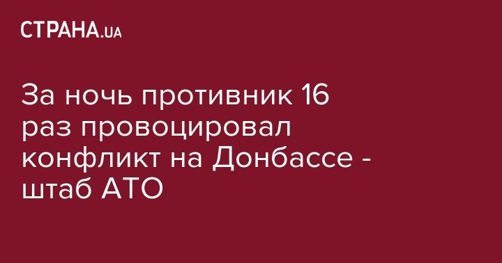 За ночь противник 16 раз провоцировал конфликт на Донбассе - штаб АТО