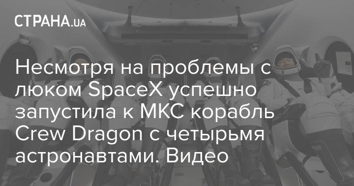 Сегодня ночью, 16 ноября, в 02.37 (время киевское - Ред.) компания SpaceX успешно запустила в космос пилотируемый корабль Crew Dragon-1 с четырьмя астронавтами на борту.