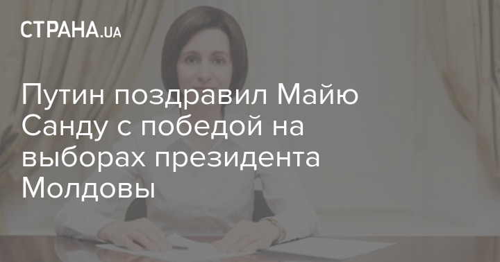 Путин поздравил Майю Санду с победой на выборах президента Молдовы