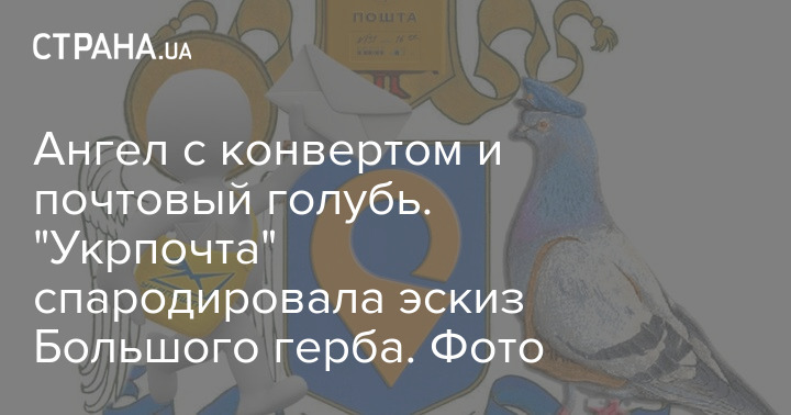 Ангел с конвертом и почтовый голубь. "Укрпочта" спародировала эскиз Большого герба. Фото