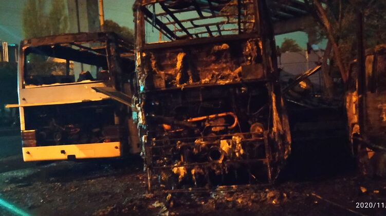 На автостоянке в Одессе ночью сгорели автобусы и эвакуатор, есть раненый. Фото