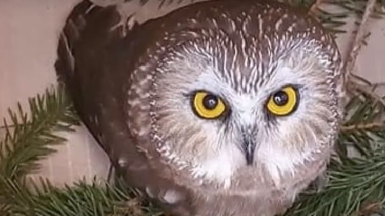 В Нью-Йорке нашли маленького совенка в Рождественской елке. Видео