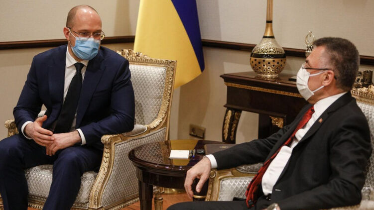 Премьер-министр Украины Денис Шмыгаль в понедельник, 30 ноября, встретился с вице-президентом Турции Фуатом Октаем. Стороны обговорили совместные инвестиционные проекты, начало зоны свободной торговли и строительство жилья для крымских татар.
