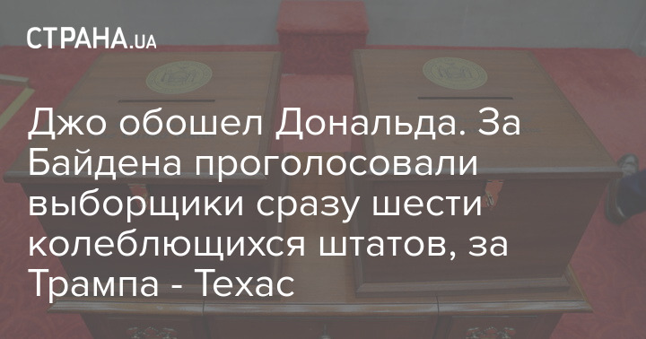 Байдена поддержали выборщики в шести ключевых колеблющихся штатах. За республиканца Дональда Трампа проголосовали все 38 выборщиков Техаса.