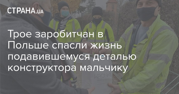 Украинцы, которые работали на строительстве в Польше, помогли местной жительнице спасти маленького сына, который подавился деталью конструктора.  За такой поступок их лично отблагодарил заместитель мэра.
