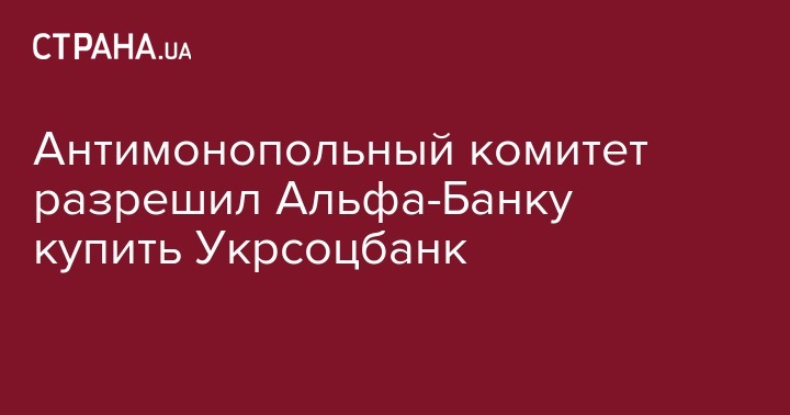 Антимонопольный комитет Украины разрешил компании ABH Holdings S.A. (ABHH), которая опосредованно владеет Альфа-Банком, купить 100% акций Укрсоцбанка. Об этом говорится на сайте АМКУ.