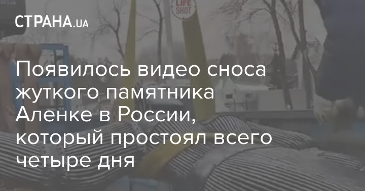 Появилось видео сноса жуткого памятника Аленке в России, который простоял всего четыре дня