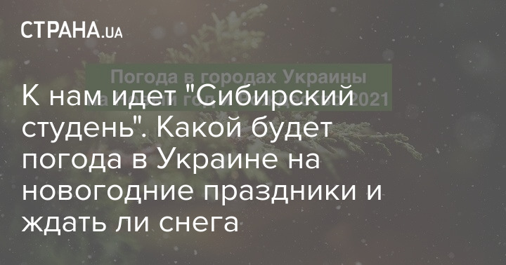 В канун новогодних праздников сибирский антициклон принесет в Украину холодные воздушные массы и осадки. В отдельных регионах температура воздуха снизится до минус 10 градусов по Цельсию. Ожидаются осадки. Поэтому утепляйтесь и готовьтесь играть в снежки.