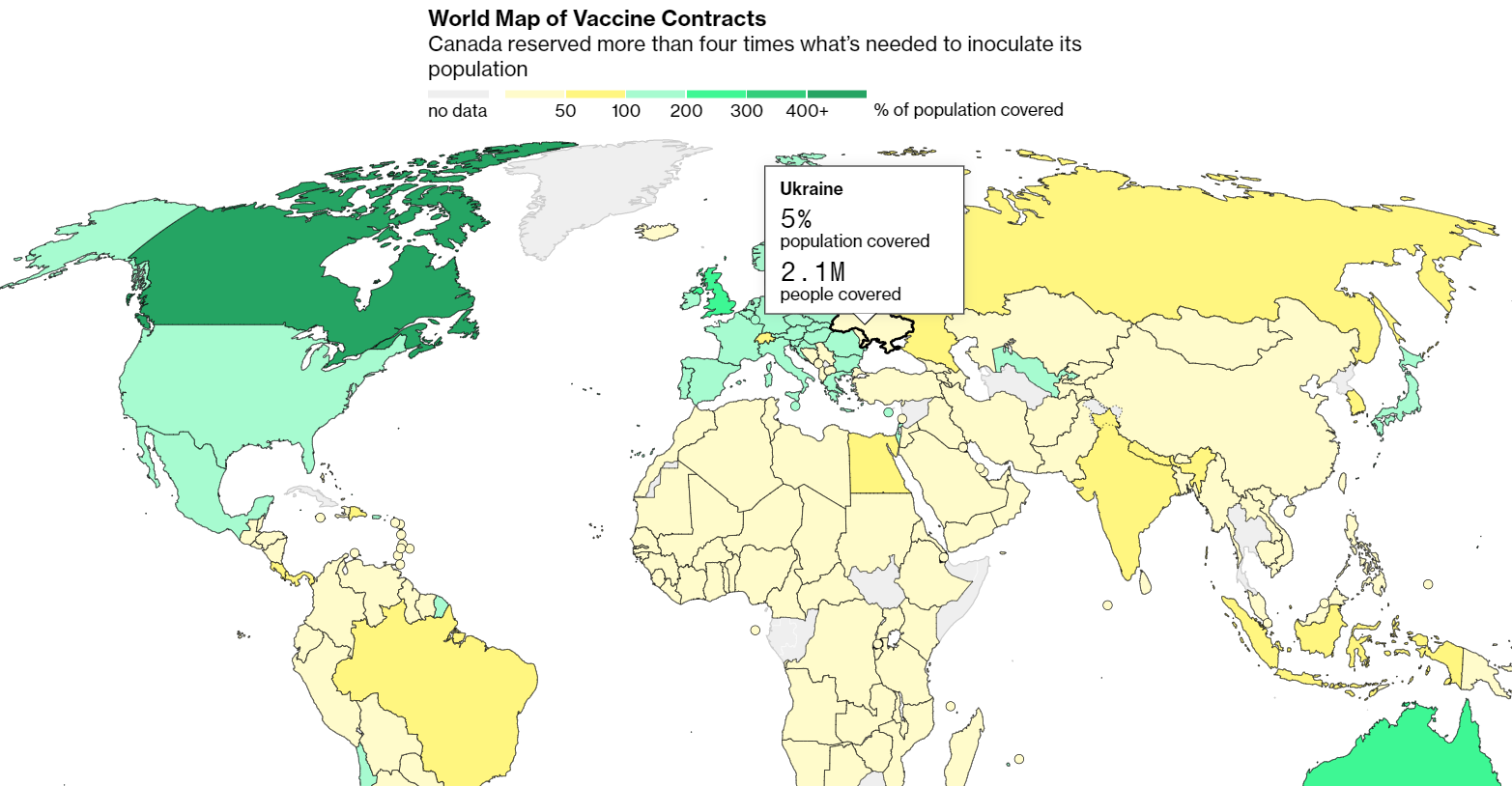 Однако и эта информация на поверку оказалась сомнительной. Издание Bloomberg на прошлой неделе опубликовало список законтрактованных вакцин по всем странам мира. Украине отвели в этом перечне вакцин только на два миллиона человек. То есть вдвое меньше, чем заявили власти.