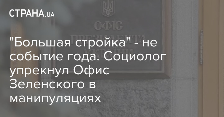 "Большая стройка" - не событие года. Социолог упрекнул Офис Зеленского в манипуляциях