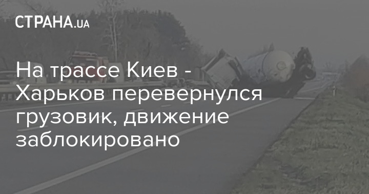 На трассе Киев - Харьков перевернулся грузовик, движение заблокировано