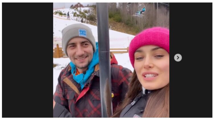 После завершения проекта "Холостячка" пара проводит первый совместный отпуск в Карпатах. В Instagram появилось веселое новогоднее видеопоздравление, записанное во время скоростного спуска.